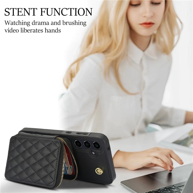 For Samsung Galaxy A35 5G AwQuer Crossbody Zipper Wallet Rhombic Leather Back Phone Case(Black)