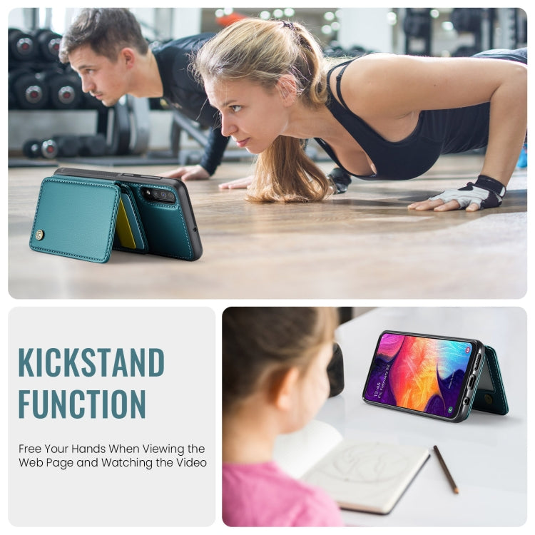 For Samsung Galaxy A50 JEEHOOD J05 Business Magnetic Style RFID Leather Phone Case(Blue Green)