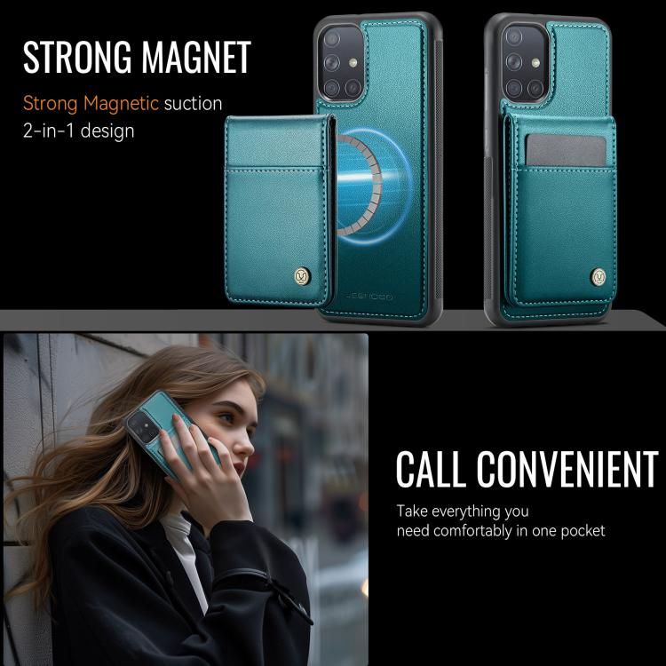 For Samsung Galaxy A51 4G JEEHOOD J06 British Style RFID MagSafe Card Bag PU Phone Case(Green)