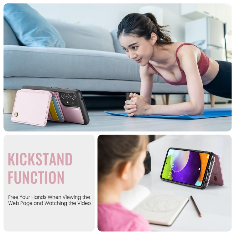 For Samsung Galaxy A52 5G / A52 4G JEEHOOD J05 Business Magnetic Style RFID Leather Phone Case(Pink)