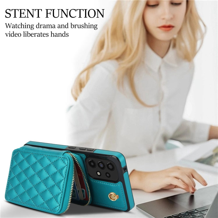 For Samsung Galaxy A53 4G / 5G AwQuer Crossbody Zipper Wallet Rhombic Leather Back Phone Case(Green)