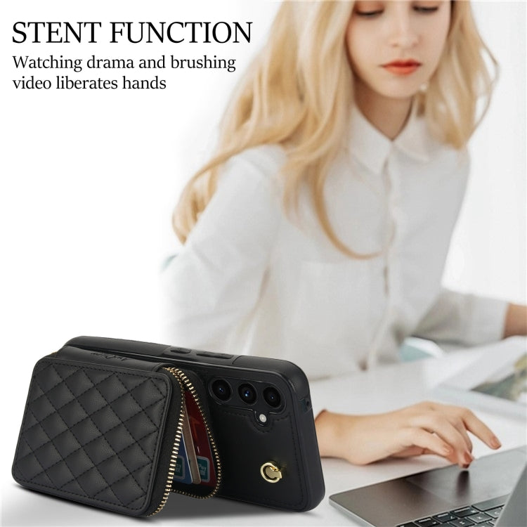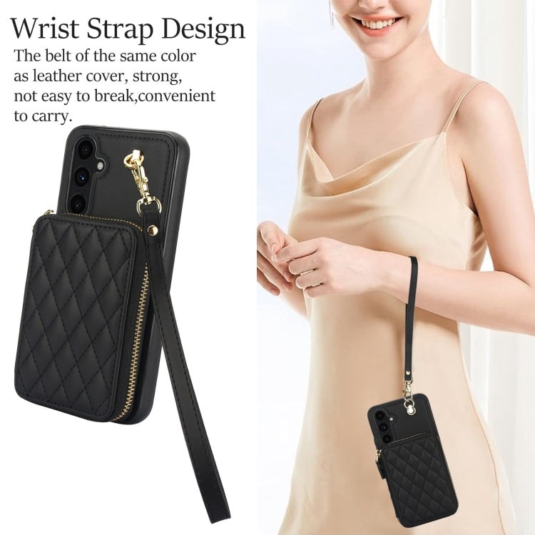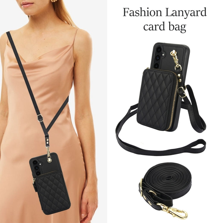 For Samsung Galaxy A54 4G / 5G AwQuer Crossbody Zipper Wallet Rhombic Leather Back Phone Case(Black)