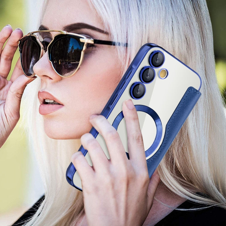 For Samsung Galaxy A55 5G Shield MagSafe RFID Anti-theft Rhombus Leather Phone Case(Dark Blue)