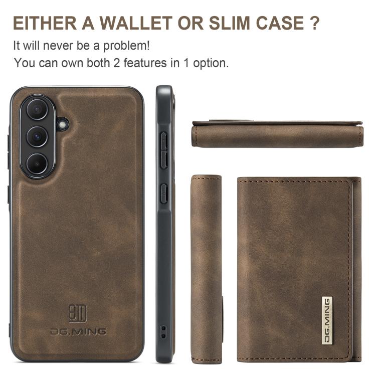 For Samsung Galaxy A56 5G DG.MING M1 Series 3-Fold Multi Card Wallet + Magnetic Phone Case(Coffee)
