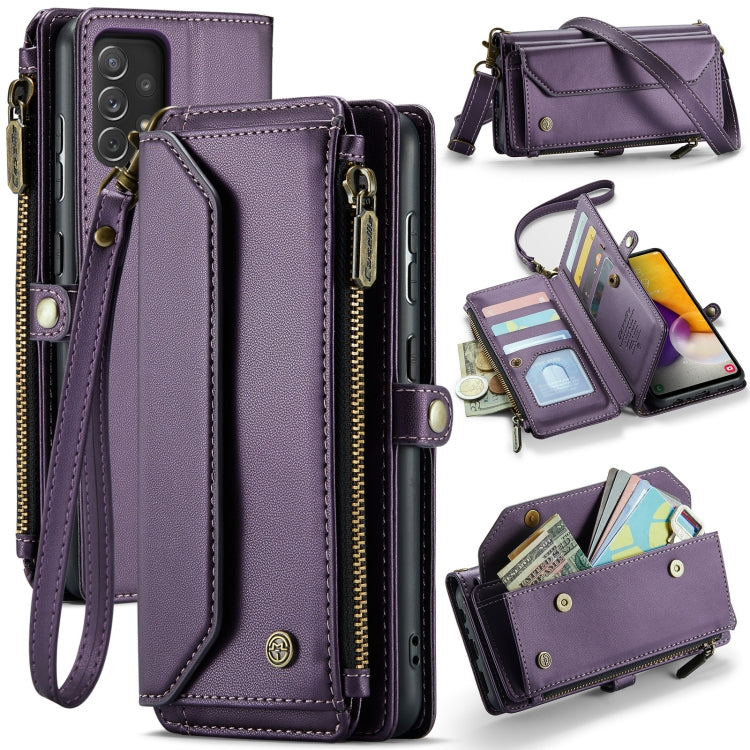 For Samsung Galaxy A72 CaseMe C36 Card Slots Zipper Wallet RFID Anti-theft Leather Phone Case(Purple)