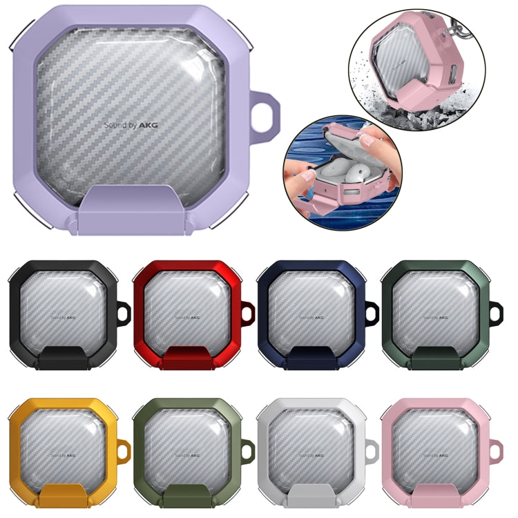 For Samsung Galaxy Buds2 / Live / Pro / FE Transparent Carbon Fiber TPU Hybrid PC Case with Hook & Holder(Yellow)