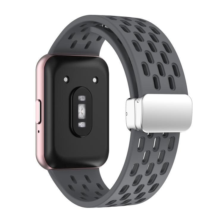 For Samsung Galaxy Fit 3 xDfind Mesh Magnetic Silver Buckle Silicone Watch Strap(Dark Gray)