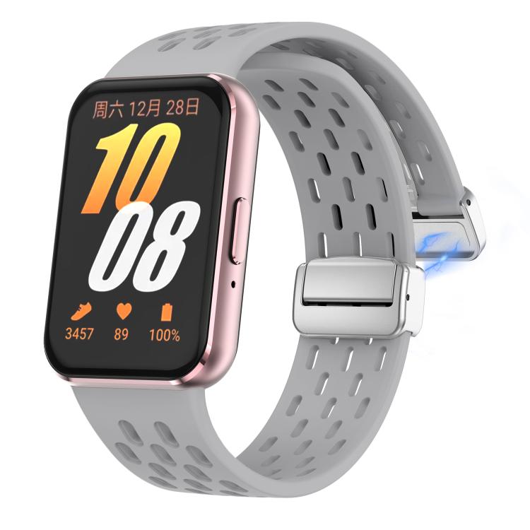 For Samsung Galaxy Fit 3 xDfind Mesh Magnetic Silver Buckle Silicone Watch Strap(Grey)