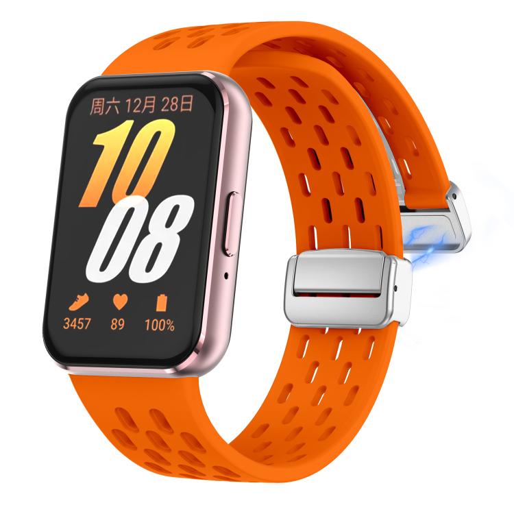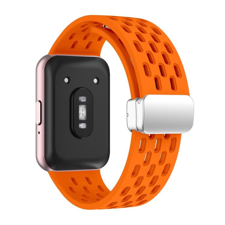 For Samsung Galaxy Fit 3 xDfind Mesh Magnetic Silver Buckle Silicone Watch Strap(Orange)