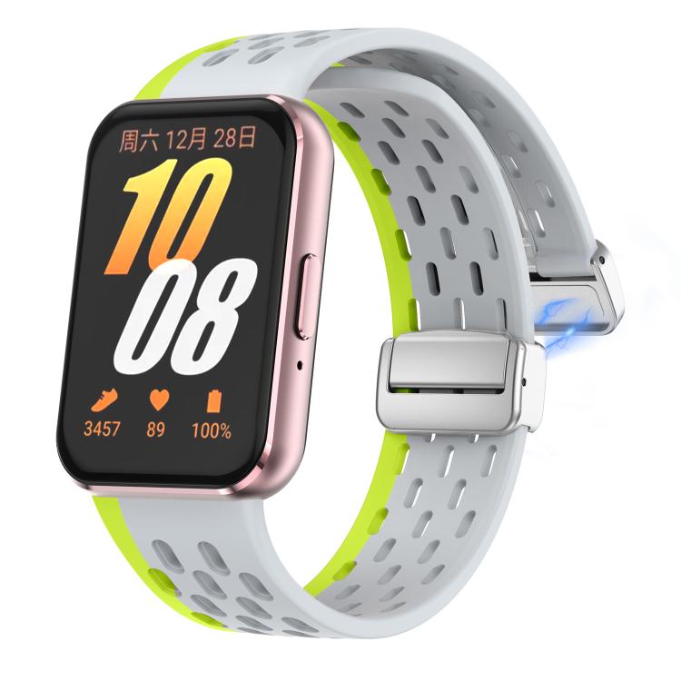 For Samsung Galaxy Fit 3 xDfind Mesh Magnetic Silver Buckle Silicone Watch Strap(Wild Path Grey Green)