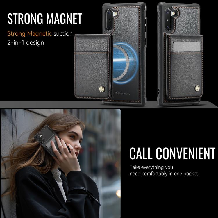 For Samsung Galaxy Note10+ JEEHOOD J06 British Style RFID MagSafe Card Bag PU Phone Case(Black)