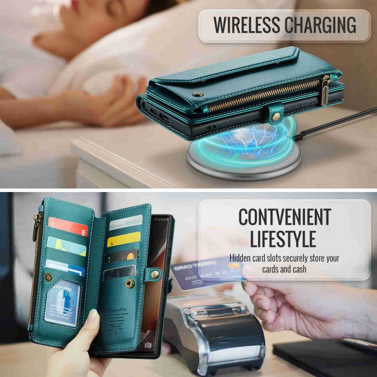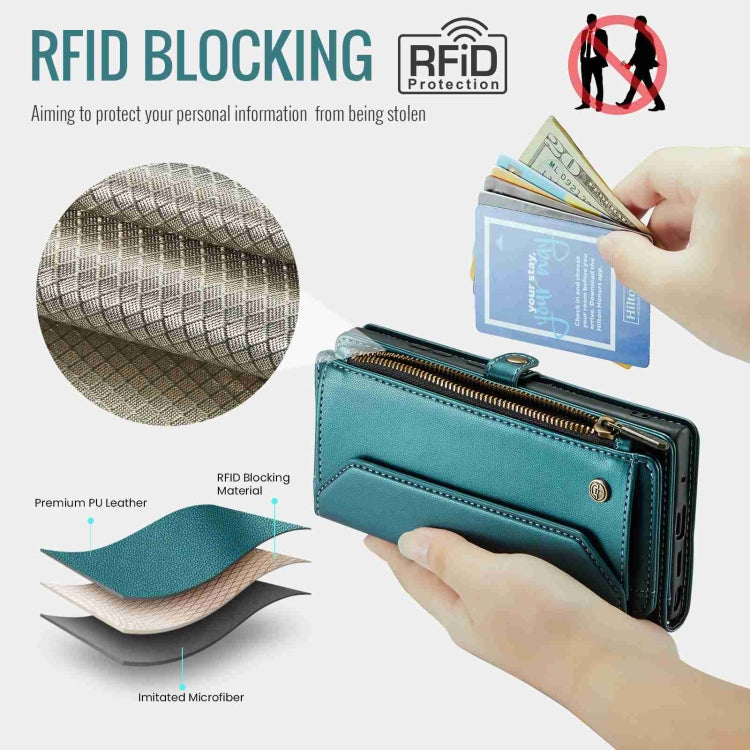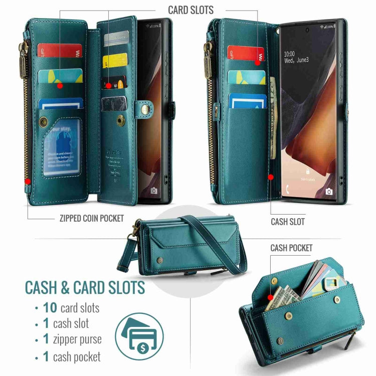 For Samsung Galaxy Note20 Ultra CaseMe C36 Card Slots Zipper Wallet RFID Anti-theft Leather Phone Case(Blue-green)