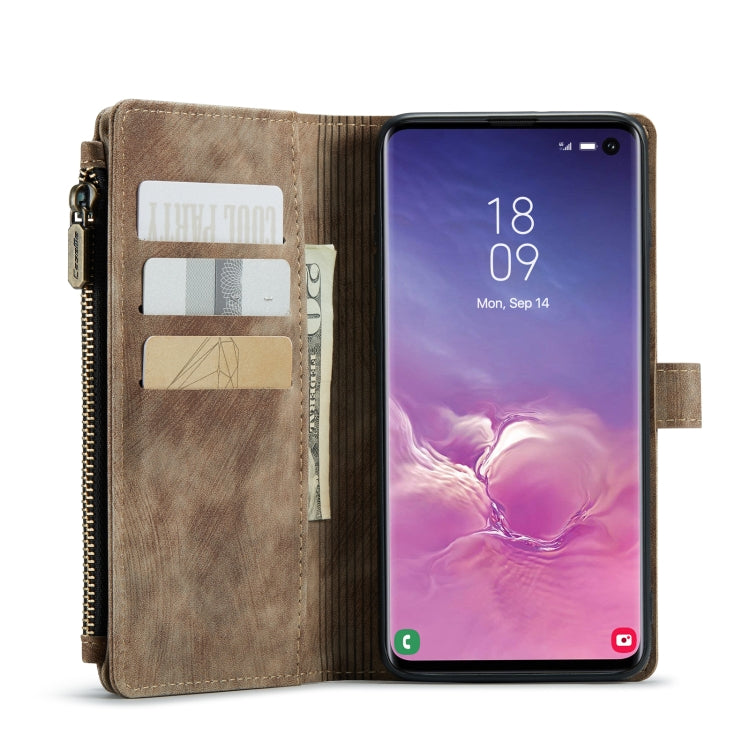 For Samsung Galaxy S10 CaseMe-C30 PU + TPU Multifunctional Horizontal Flip Leather Case with Holder & Card Slot & Wallet & Zipper Pocket(Brown)