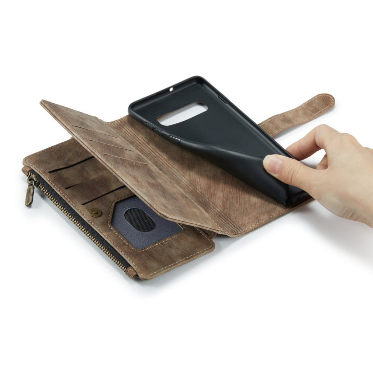 For Samsung Galaxy S10+ CaseMe-C30 PU + TPU Multifunctional Horizontal Flip Leather Case with Holder & Card Slot & Wallet & Zipper Pocket(Brown)