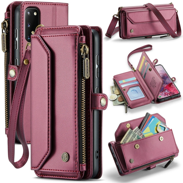 For Samsung Galaxy S20 CaseMe C36 Card Slots Zipper Wallet RFID Anti-theft Leather Phone Case(Wine Red)