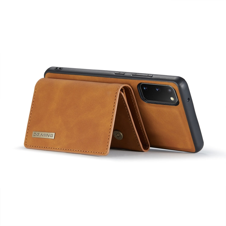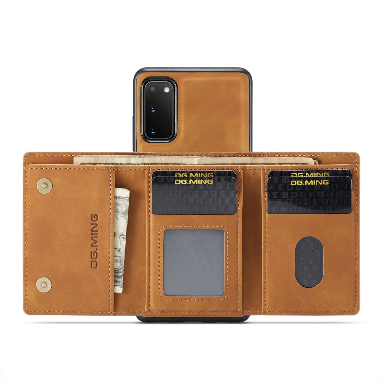 For Samsung Galaxy S20 DG.MING M1 Series 3-Fold Multi Card Wallet Back Cover Shockproof Case with Holder Function(Brown)