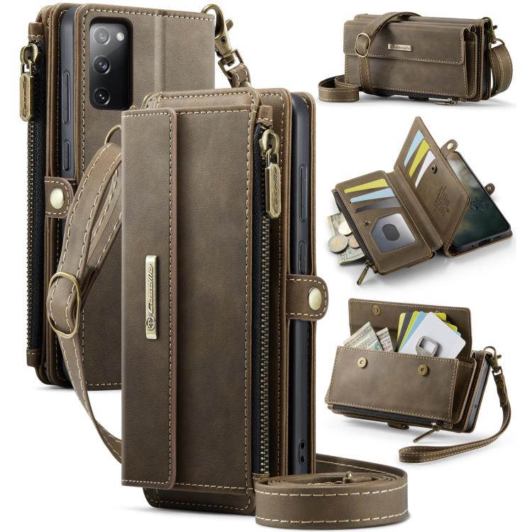 For Samsung Galaxy S20 FE 5G CaseMe C39 RFID Blocking Zipper Wallet Leather Phone Case with Crossbody Strap(Coffee)