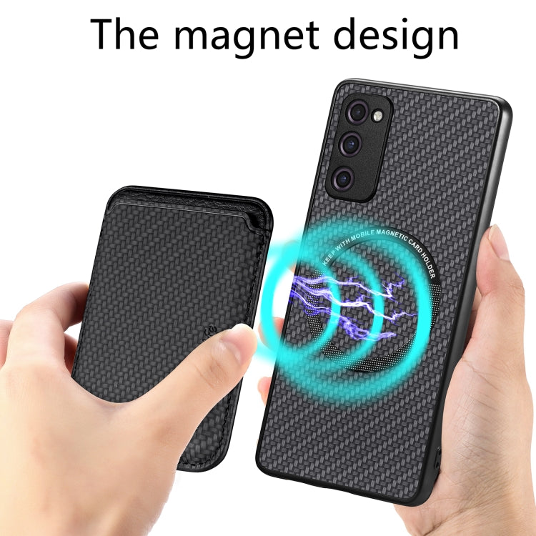 For Samsung Galaxy S20 FE Carbon Fiber Leather Card Magsafe Magnetic Phone Case(Black)