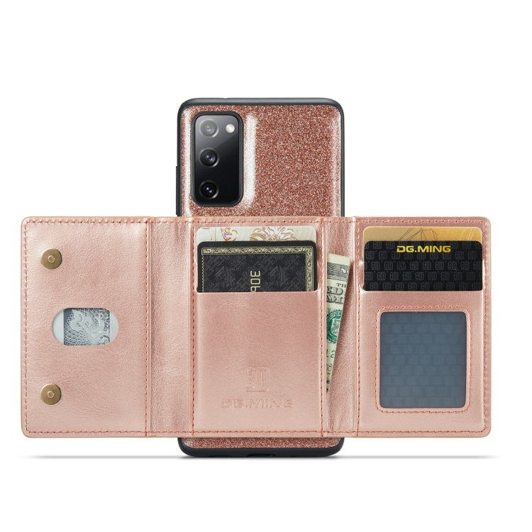 For Samsung Galaxy S20 FE DG.MING M3 Series Glitter Powder Card Bag Leather Case(Rose Gold)
