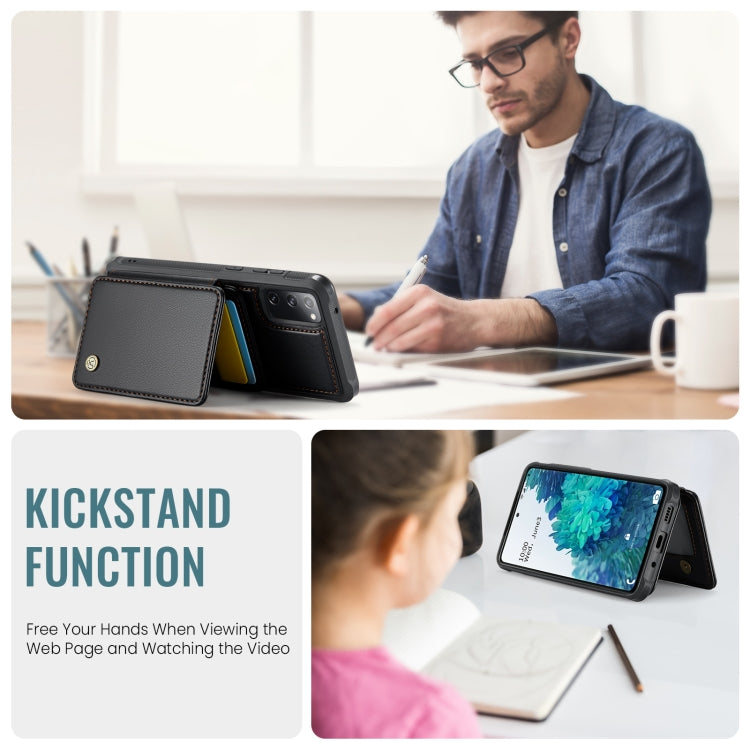 For Samsung Galaxy S20 FE JEEHOOD J05 Business Magnetic Style RFID Leather Phone Case(Black)
