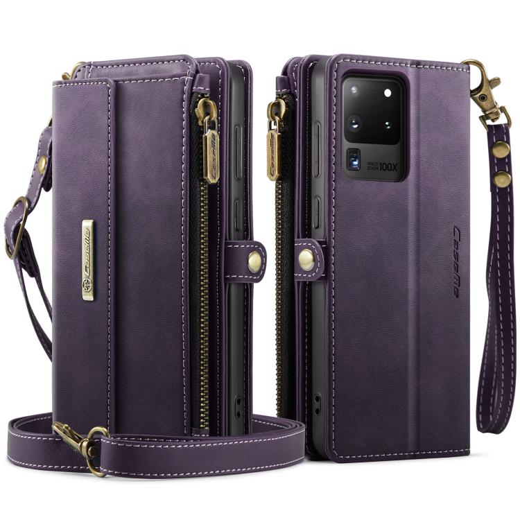 For Samsung Galaxy S20 Ultra 5G CaseMe C39 RFID Blocking Zipper Wallet Leather Phone Case with Crossbody Strap(Purple)
