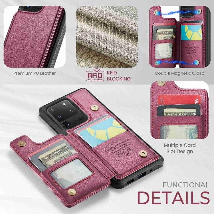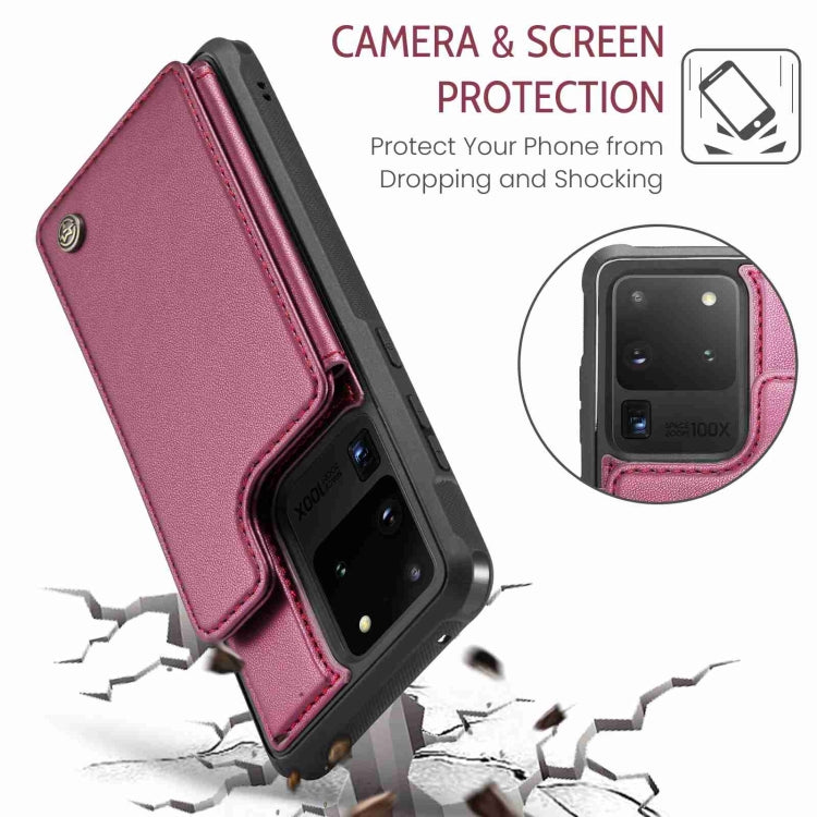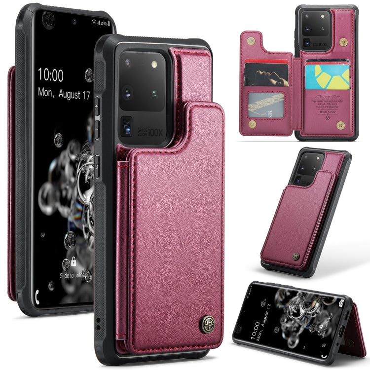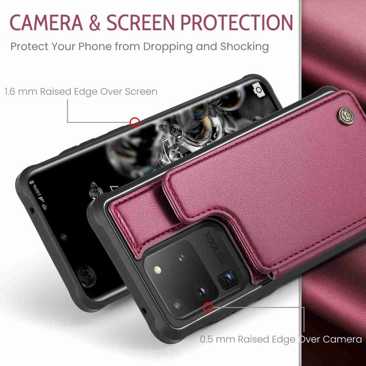 For Samsung Galaxy S20 Ultra CaseMe C22 Card Slots Holder RFID Anti-theft Phone Case(Wine Red)