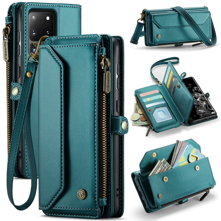 For Samsung Galaxy S20 Ultra CaseMe C36 Card Slots Zipper Wallet RFID Anti-theft Leather Phone Case(Blue-green)