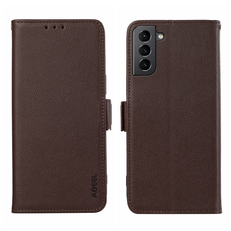 For Samsung Galaxy S21 5G ABEEL Side-Magnetic Litchi Pattern Leather RFID Phone Case(Brown)