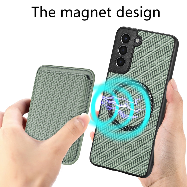 For Samsung Galaxy S21 5G Carbon Fiber Leather Card Magsafe Magnetic Phone Case(Green)