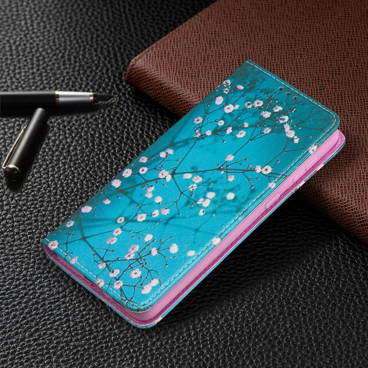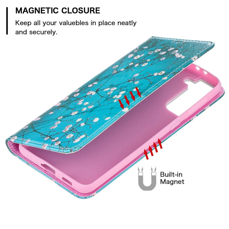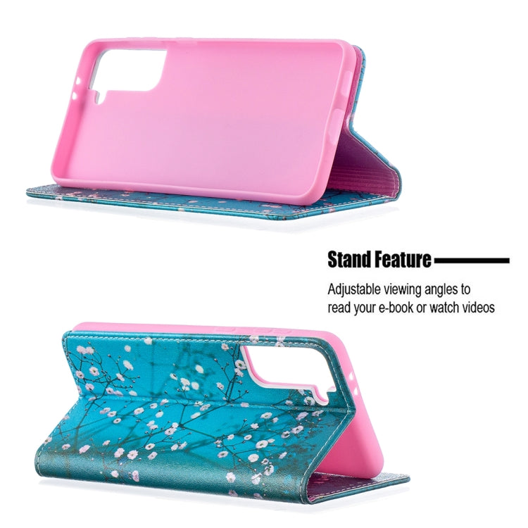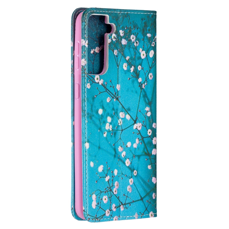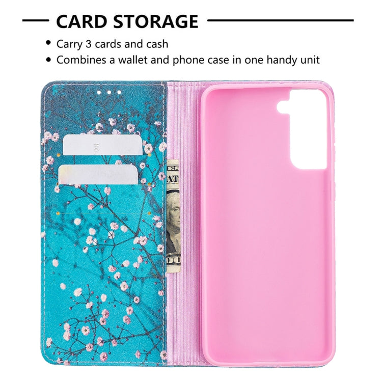 For Samsung Galaxy S21+ 5G Colored Drawing Pattern Invisible Magnetic Horizontal Flip PU Leather Case with Holder & Card Slots & Wallet(Plum Blossom)