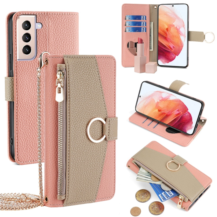 For Samsung Galaxy S21 5G Crossbody Litchi Texture Leather Phone Case(Pink)