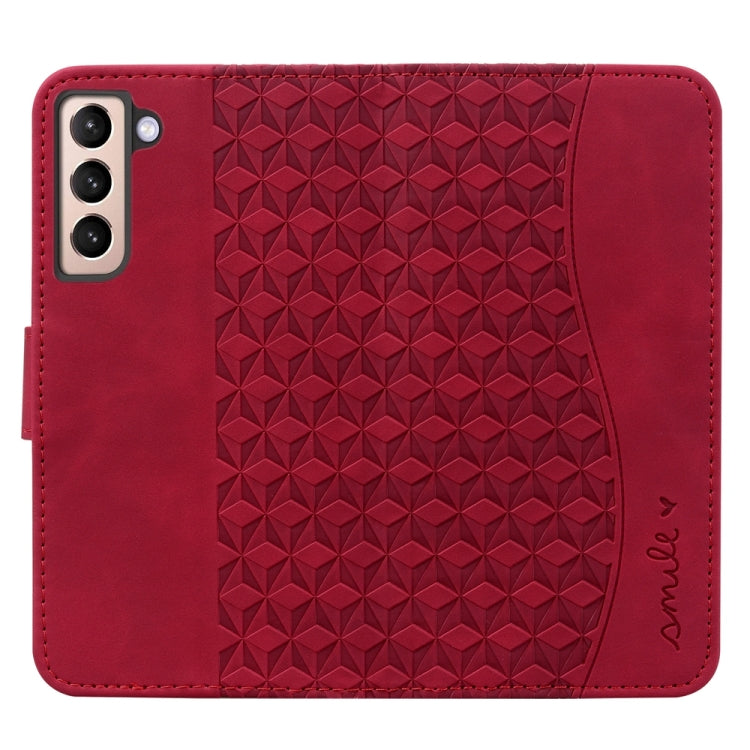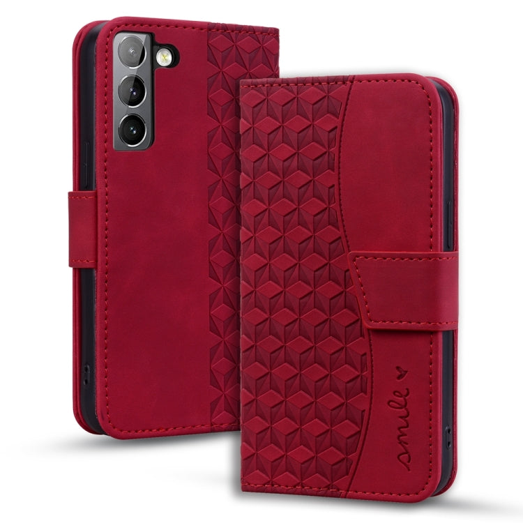 For Samsung Galaxy S21 5G Diamond Buckle Leather Phone Case with Lanyard(Wine Red)