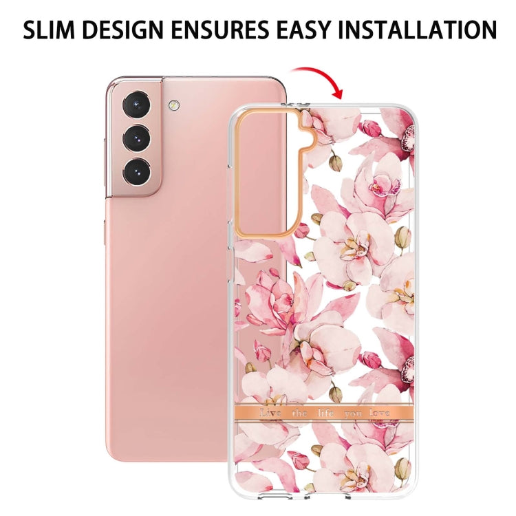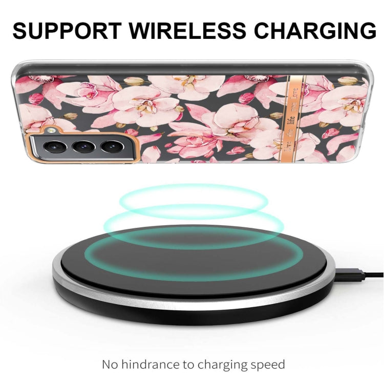 For Samsung Galaxy S21 5G Flowers and Plants Series IMD TPU Phone Case(Pink Gardenia)