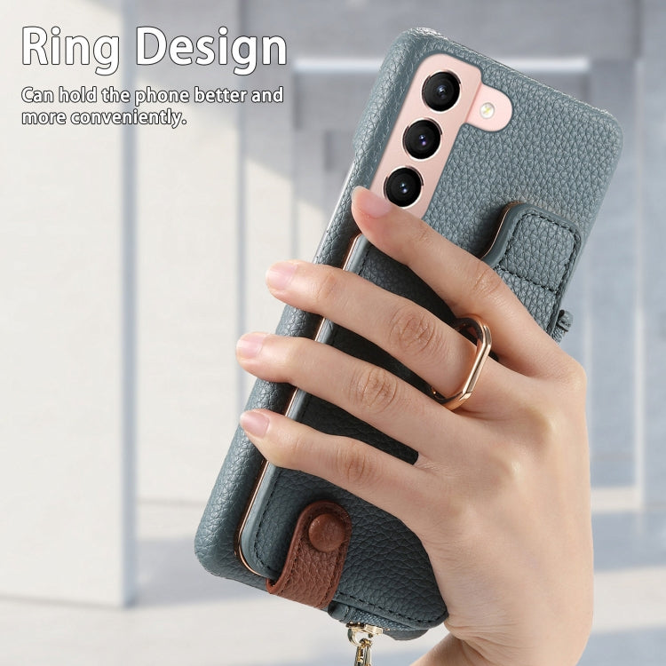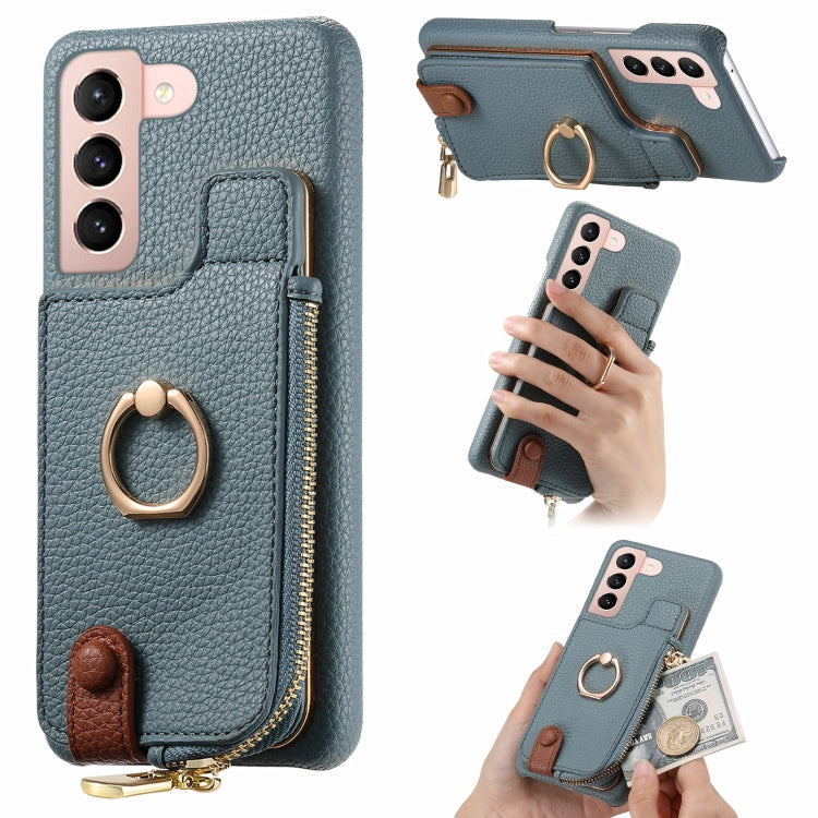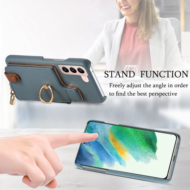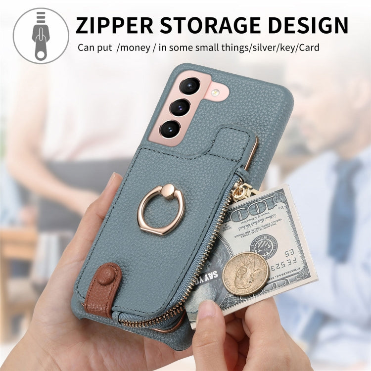 For Samsung Galaxy S21+ 5G Litchi Leather Oil Edge Ring Zipper Wallet Back Phone Case(Blue)