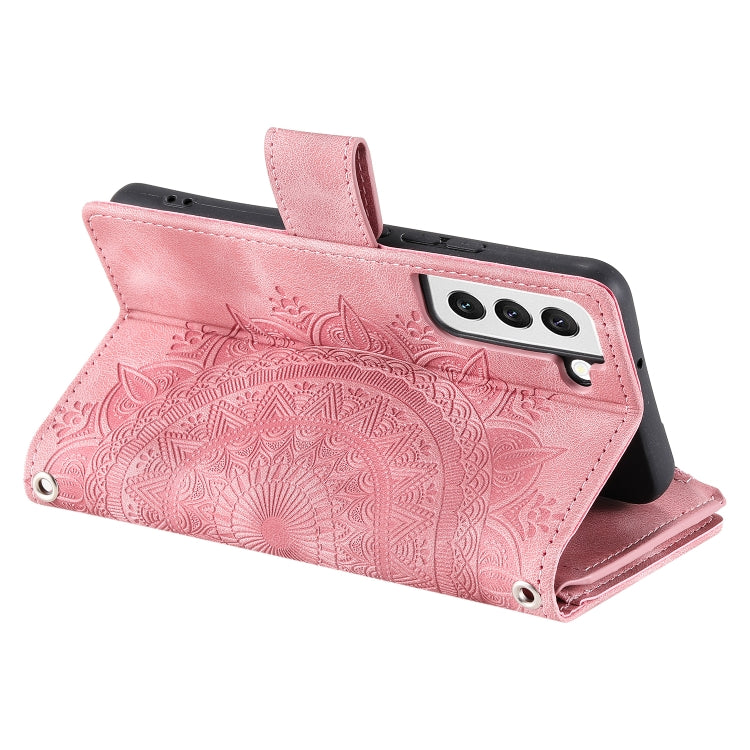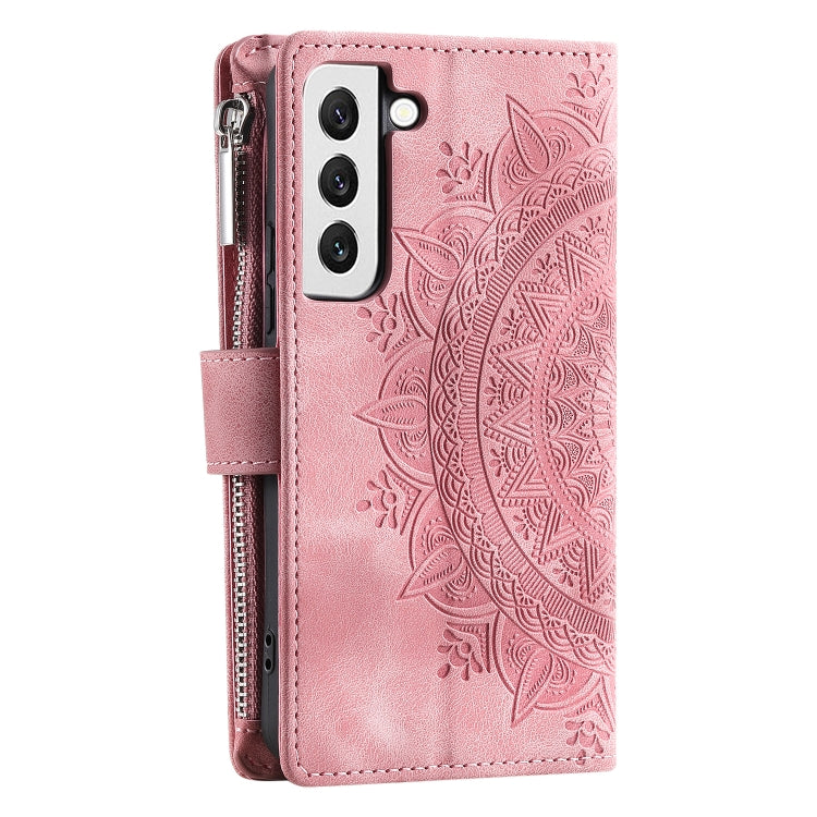 For Samsung Galaxy S21+ 5G Multi-Card Totem Zipper Leather Phone Case(Pink)