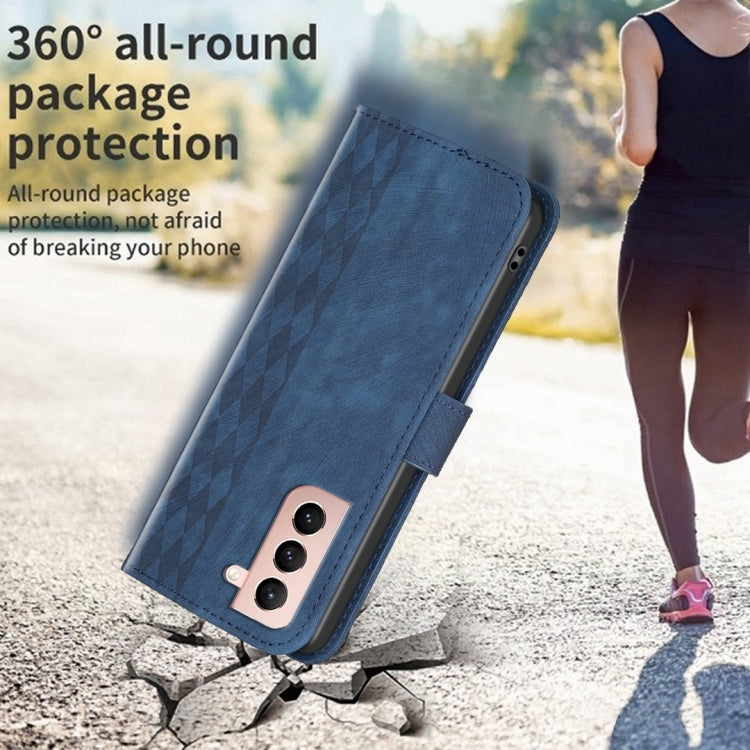 For Samsung Galaxy S21 5G Plaid Embossed Leather Phone Case(Blue)