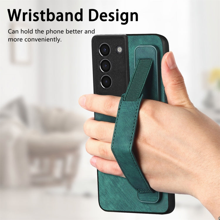 For Samsung Galaxy S21+ 5G Retro Wristband Holder Leather Back Phone Case(Green)