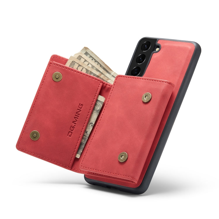 For Samsung Galaxy S21+ DG.MING M1 Series 3-Fold Multi Card Wallet Back Cover Shockproof Case with Holder Function(Red)