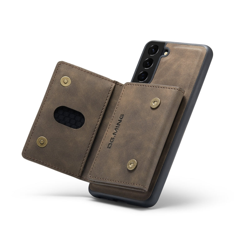 For Samsung Galaxy S21+ DG.MING M2 Series 3-Fold Multi Card Bag Back Cover Shockproof Case with Wallet & Holder Function(Coffee)