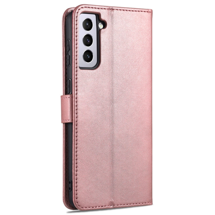 For Samsung Galaxy S21 FE 5G AZNS Skin Feel Calf Texture Horizontal Flip Leather Case with Card Slots & Holder & Wallet(Rose Gold)