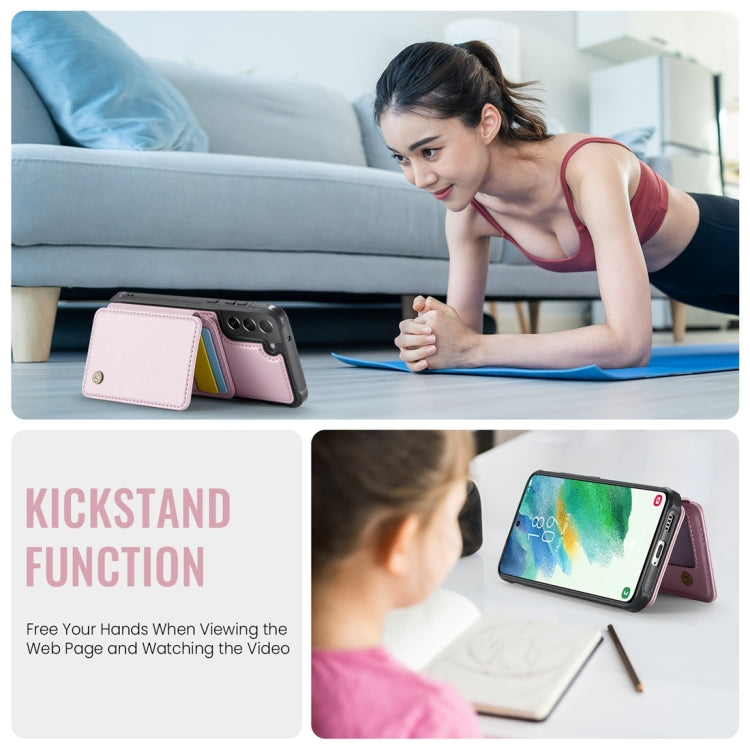 For Samsung Galaxy S21 FE 5G JEEHOOD J05 Business Magnetic Style RFID Leather Phone Case(Pink)