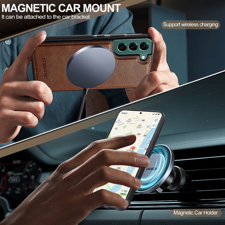 For Samsung Galaxy S21 FE 5G LC.IMEEKE L5 Series Detachable RFID Card Bag Magsafe Phone Case(Brown)