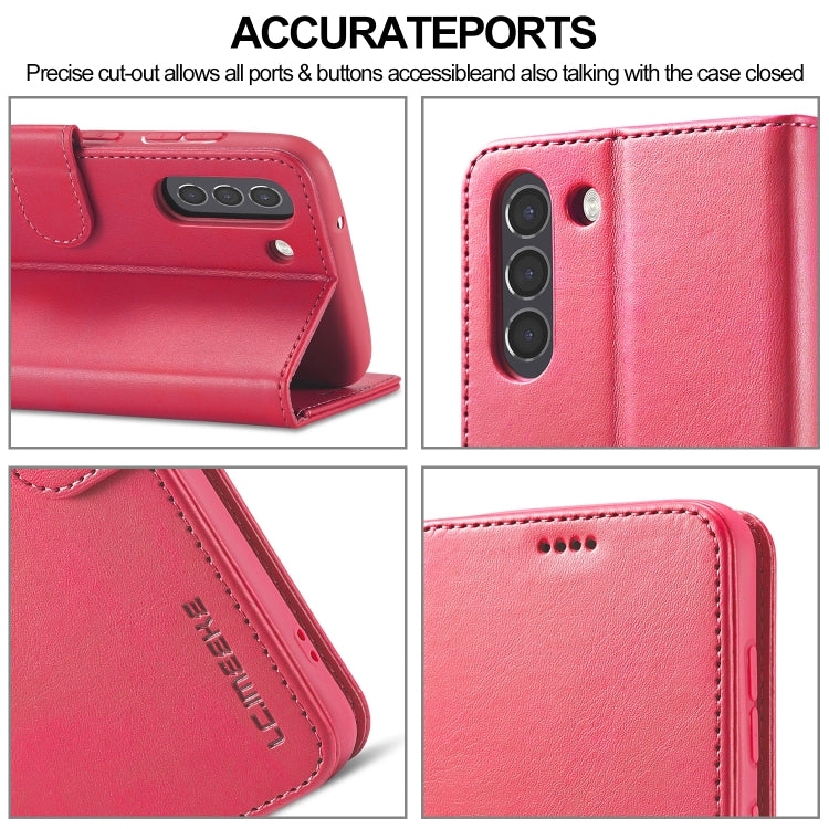 For Samsung Galaxy S21 FE LC.IMEEKE Calf Texture Horizontal Flip Leather Case, with Holder & Card Slots & Wallet(Red)