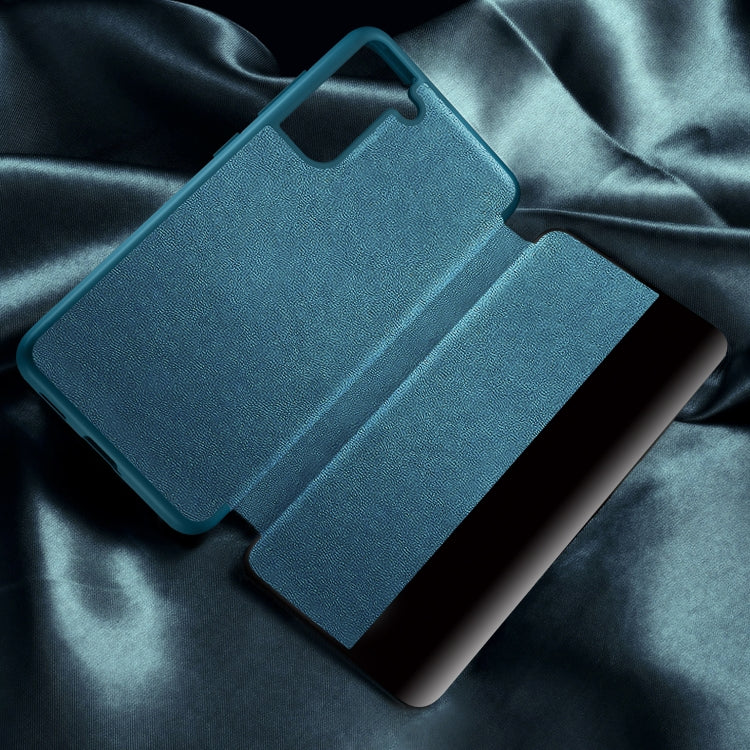 For Samsung Galaxy S21 FE Shockproof Horizontal Flip Plain Leather Phone Case(Green)