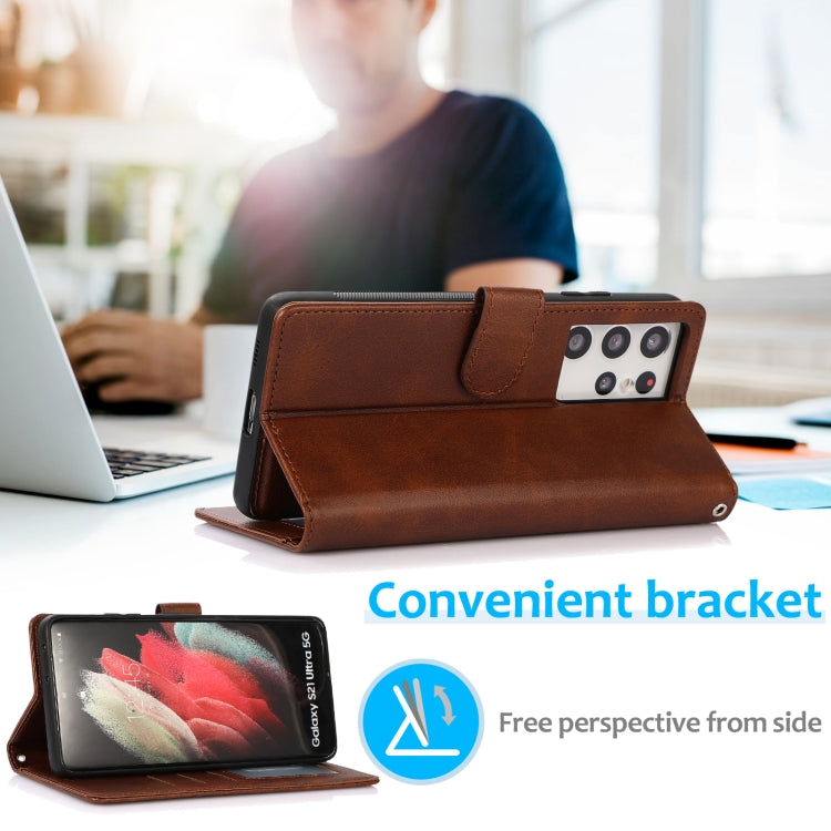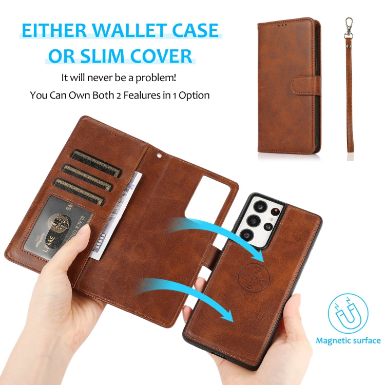 For Samsung Galaxy S21 Ultra 5G Calf Texture 2 in 1 Detachable Magnetic Back Cover Horizontal Flip Leather Case with Holder & Card Slots & Wallet & Photo Frame(Brown)