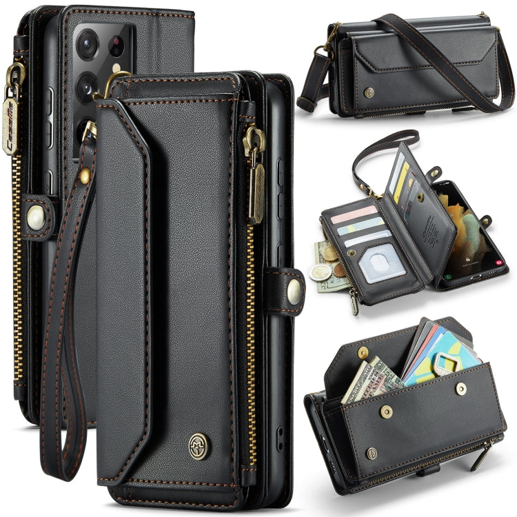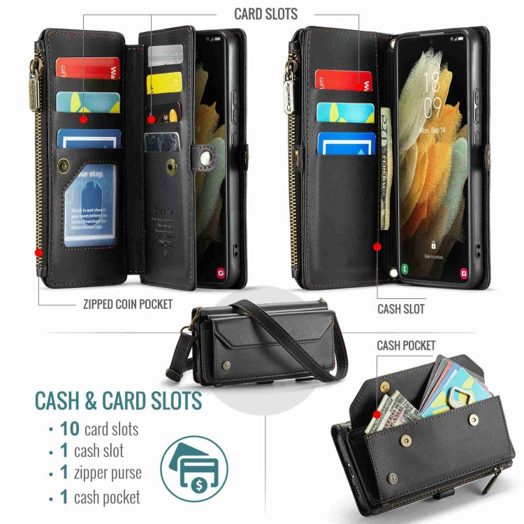 For Samsung Galaxy S21 Ultra 5G CaseMe C36 Card Slots Zipper Wallet RFID Anti-theft Leather Phone Case(Black)