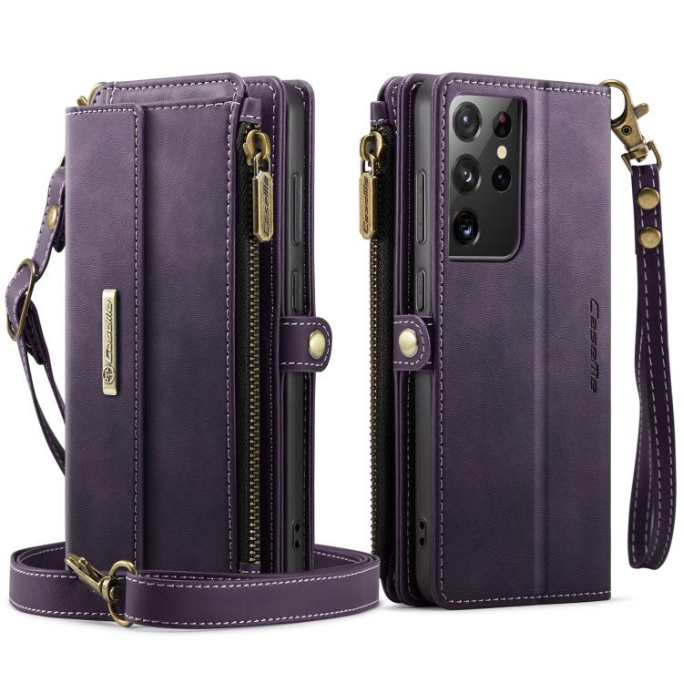 For Samsung Galaxy S21 Ultra 5G CaseMe C39 RFID Blocking Zipper Wallet Leather Phone Case with Crossbody Strap(Purple)