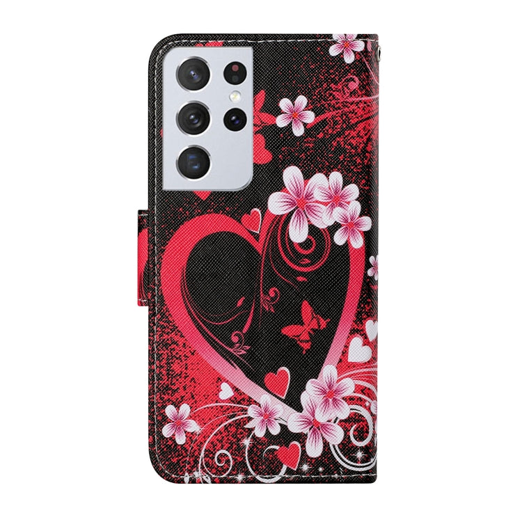 For Samsung Galaxy S21 Ultra 5G Colored Drawing Pattern Horizontal Flip Leather Case with Holder & Card Slots & Wallet & Lanyard(Red Heart)