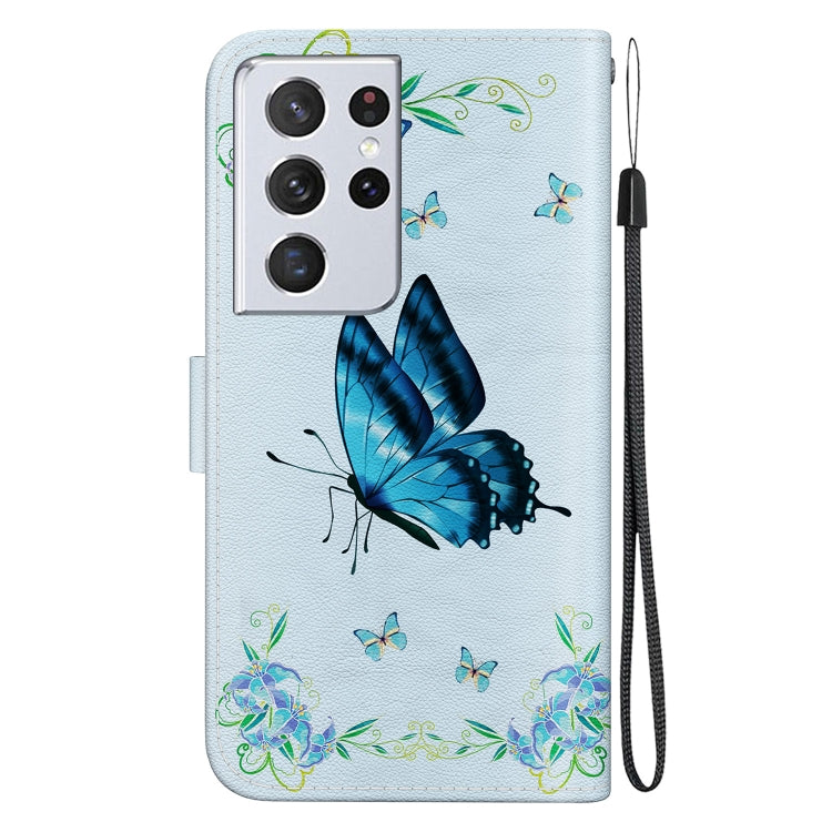 For Samsung Galaxy S21 Ultra 5G Crystal Texture Colored Drawing Leather Phone Case(Blue Pansies)