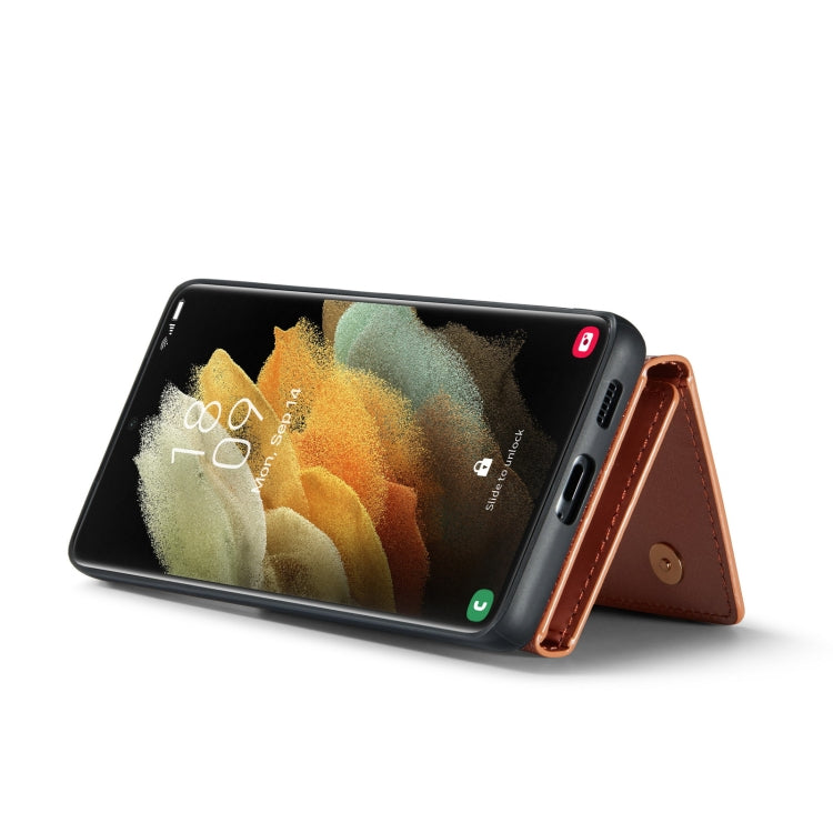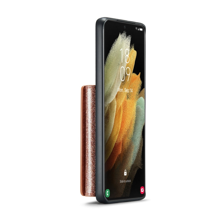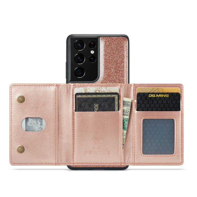 For Samsung Galaxy S21 Ultra 5G DG.MING M3 Series Glitter Powder Card Bag Leather Case(Rose Gold)